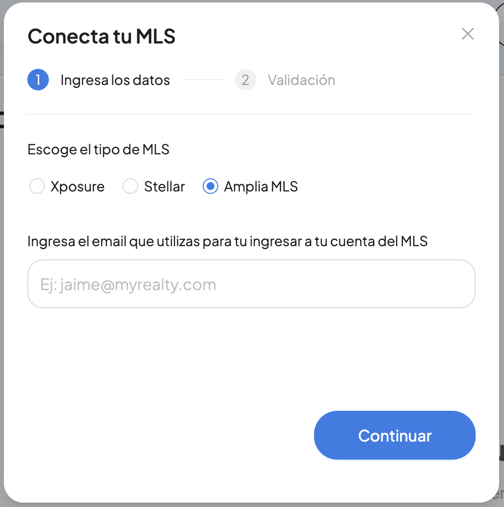 - Selecciona el MLS que utilizas.
